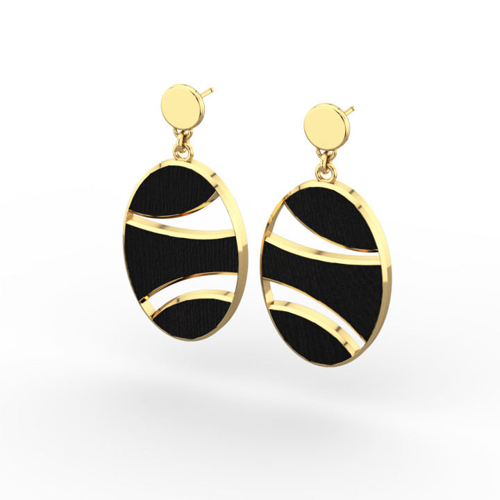 Earrings in gold and ebony wood,